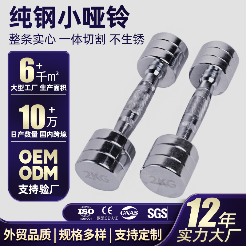 Baja murni electroplating dumbbell las terintegrasi cetakan gym kekuatan mengangkat berat baja halus padat dumbbell