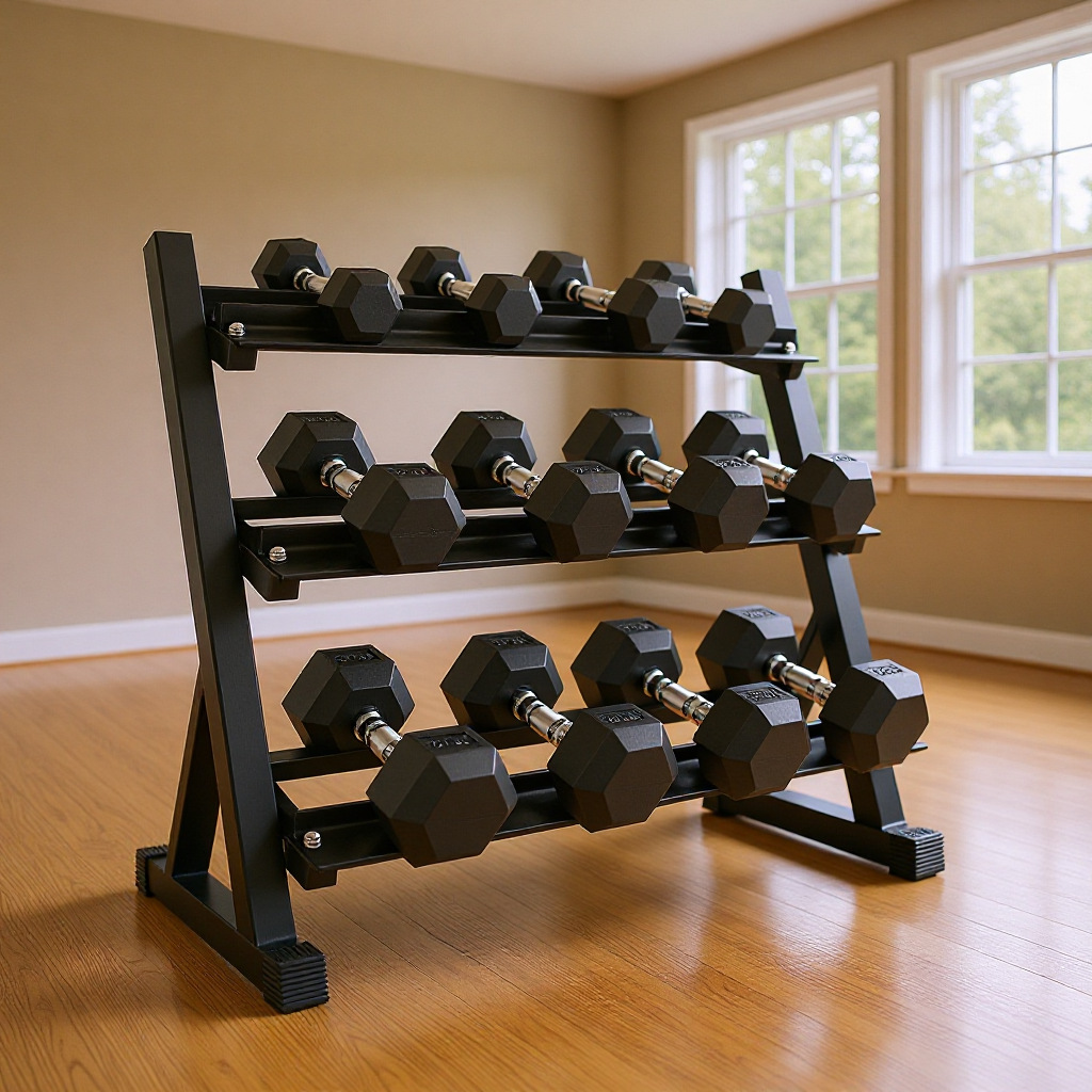 Rak dumbbell gym kepala bulat, rak penyimpanan peralatan pendidikan pribadi gym, rak halter tiga lapis, rak dumbbell gym kepala bulat lebar