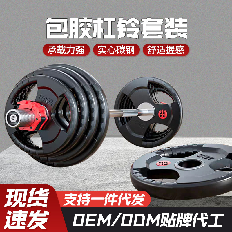Setelan barbel lapis karet, peralatan rumah tangga Fitness Pria, tongkat Olimpiade lubang besar, pinggul wanita, angkat beban, tongkat melengkung