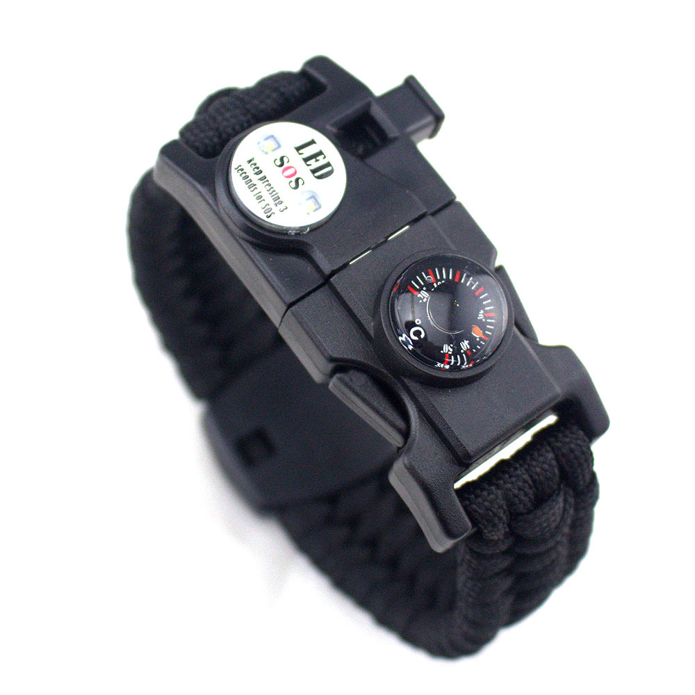 Gelang bertahan hidup luar ruangan multifungsi, gelang berkemah, gelang darurat petualangan luar ruangan, gelang tali tenun lampu LED