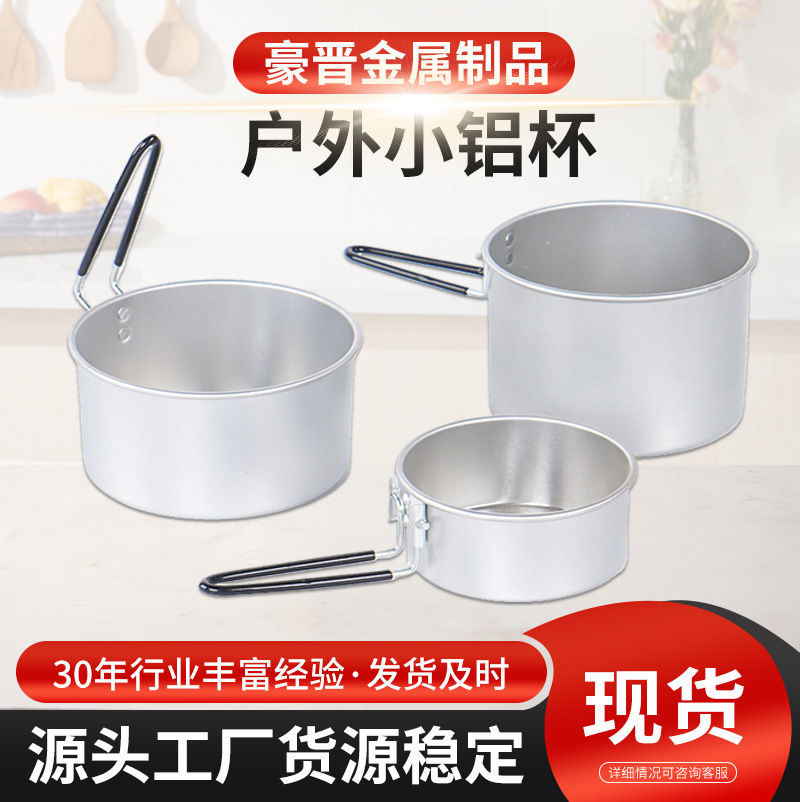 Cangkir alumunium kecil luar ruangan, peralatan masak berkemah multifungsi stainless steel dengan pegangan lipat portabel mangkuk salad Kemah gunung