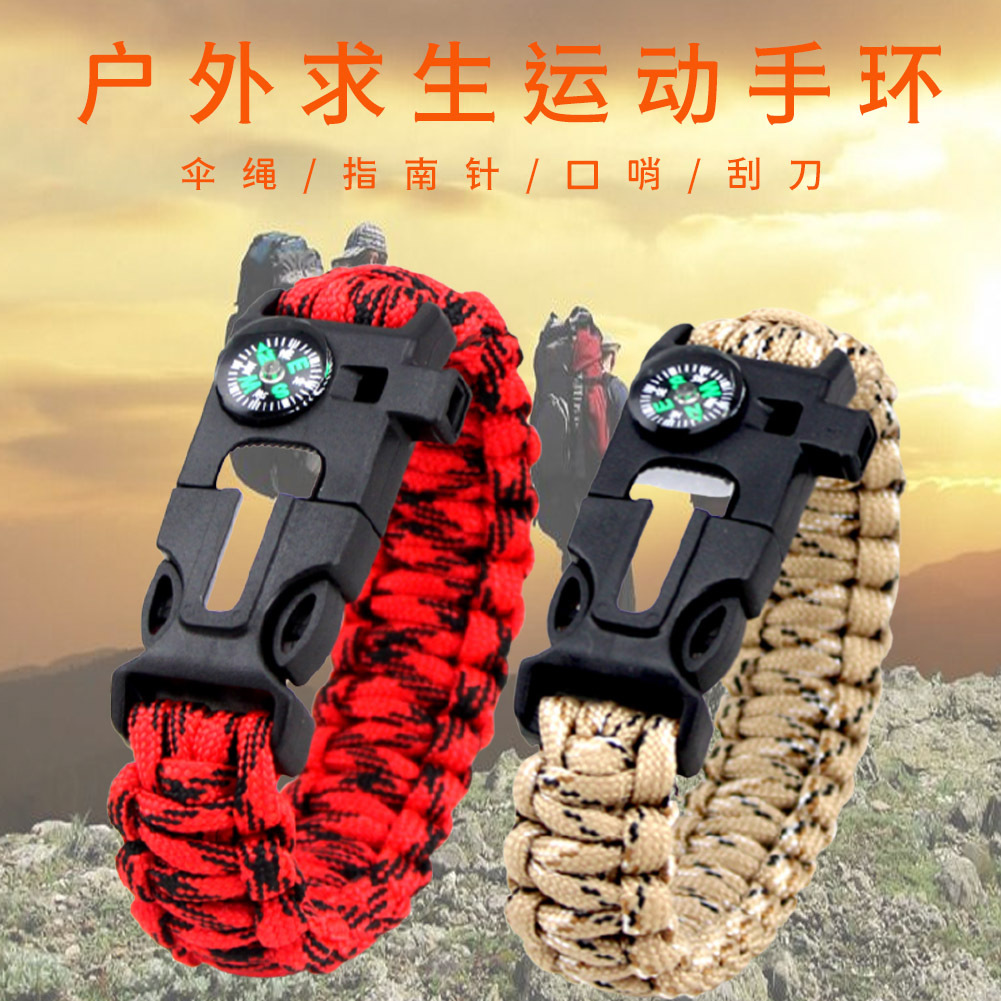 Gelang kompas tenun tali anyaman payung perlengkapan berkemah luar ruangan gelang Olahraga Keselamatan luar ruangan
