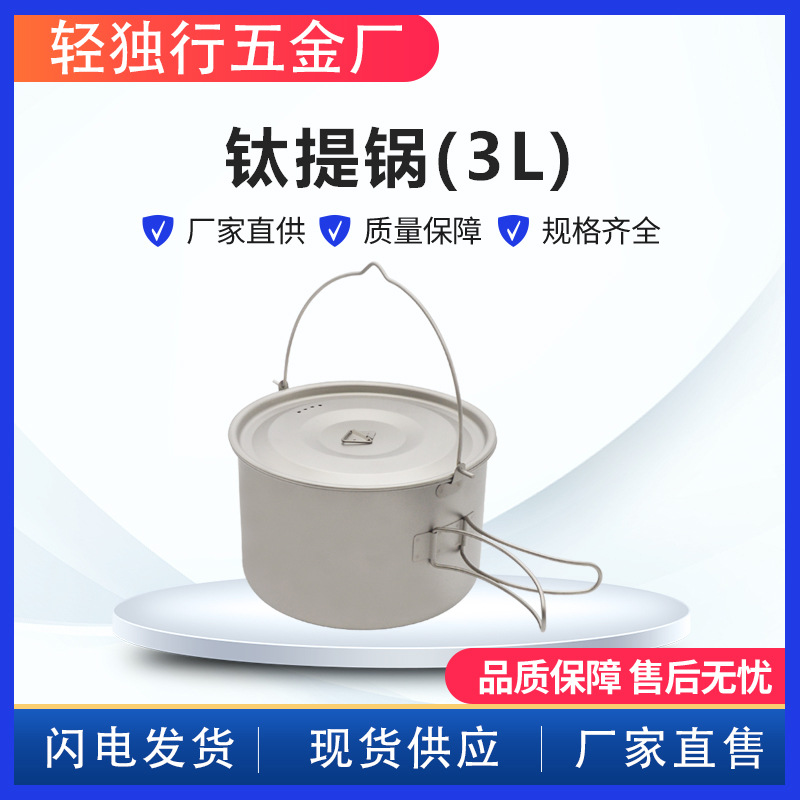 Pabrik perlengkapan berkemah gunung multifungsi, panci titanium peralatan masak Kemah portabel olahraga luar ruangan 3l