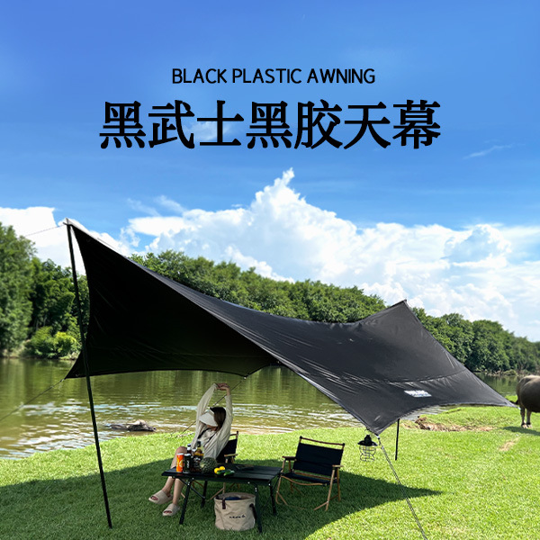 Kanopi Kemah luar ruangan portabel multifungsi, tirai perjalanan pelindung matahari tenda Kemah gunung hitam