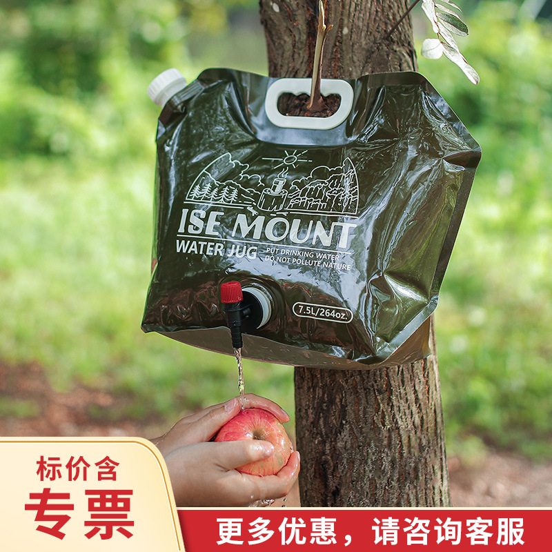 Tas penyimpan air lipat 7,5 l luar ruangan, ember plastik kapasitas besar dengan katup perlengkapan berkemah tas air portabel