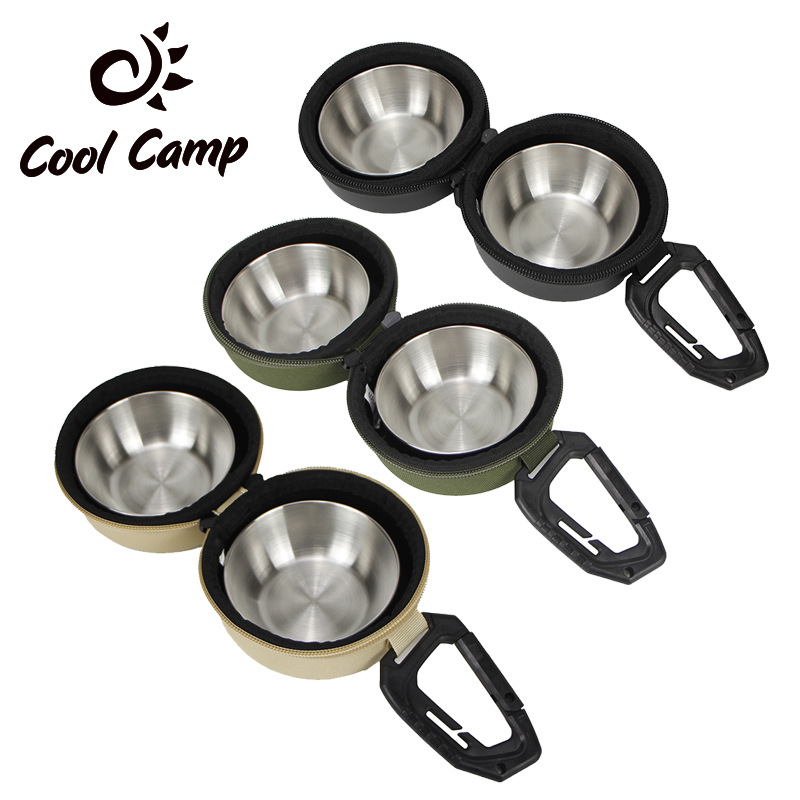 Mangkuk Air Minum Luar Ruangan Portabel Mangkuk Kucing Mangkuk Anjing Pengumpan Stainless Steel Mangkuk Ganda Tas Gantung Cepat Perlengkapan Hewan Peliharaan Kotak Set Peralatan Makan