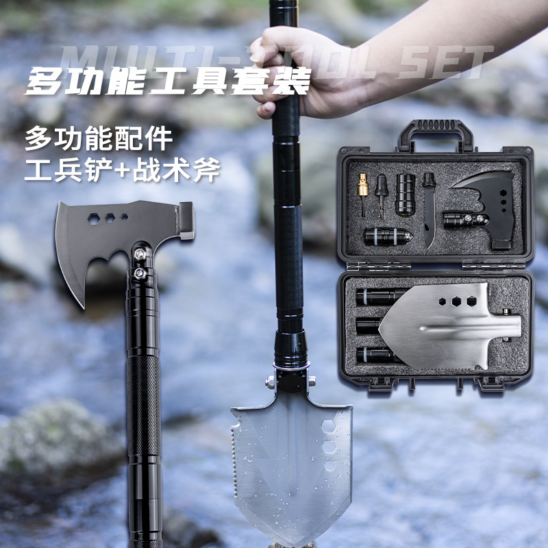 Toolbox setelan alat bertahan hidup luar ruangan kendaraan dipasang militer sekop berkemah multi-fungsi lipat militer sekop set axe