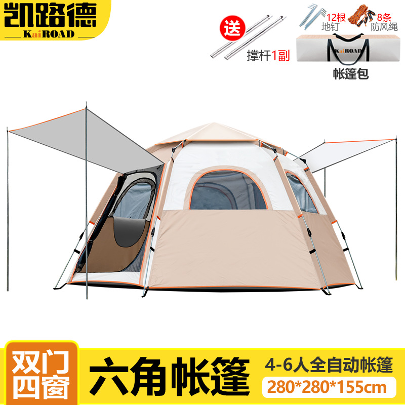 Tenda heksagonal otomatis tenda luar ruangan, tenda berkemah taman portabel cepat terbuka tabir surya tahan air
