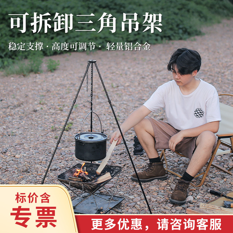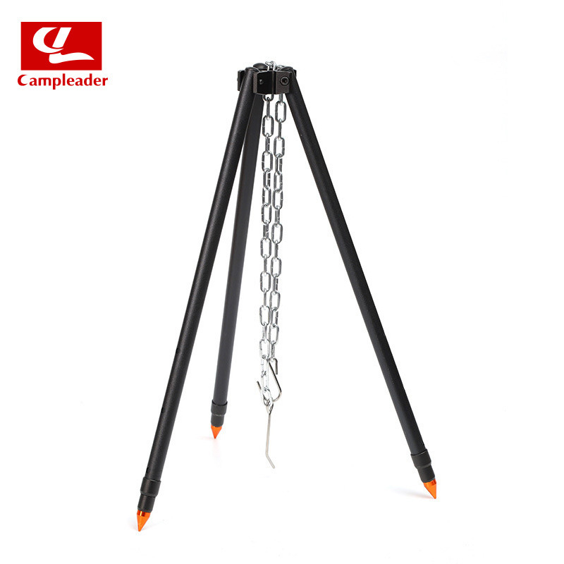 Tripod Portabel logam campuran aluminium, rak perlengkapan berkemah barbekyu panggang dapat dilipat braket panci gantung