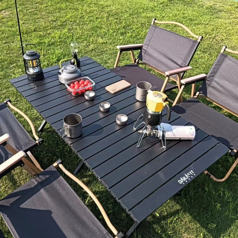 Meja Luar Ruangan Meja Gulungan Telur Baja Berkarat Meja Meja Lipat Luar Ruangan Meja Berkemah Peralatan Meja Piknik Paduan Aluminium Portabel Satu Meja