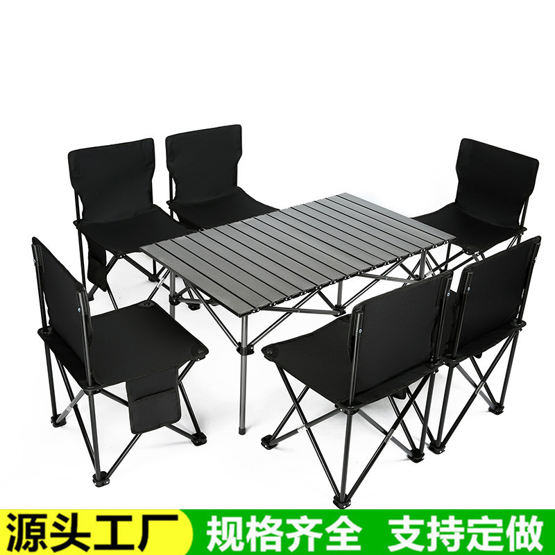 Koleksi meja lipat baja karbon, setelan meja dan kursi berkemah kios telur rol meja, kursi lipat luar ruangan, meja piknik dan kursi