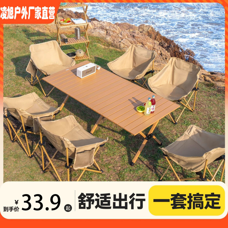 Meja dan kursi luar ruangan, setelan meja lipat meja piknik portabel berkemah, halaman meja kayu solid, Meja gulung telur piknik dan berkemah