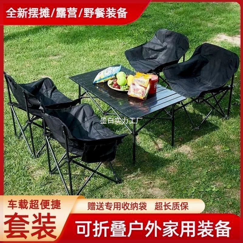 Meja Piknik Berkemah Luar Ruangan Kursi Bulan Kursi Meja Gulung Telur Lipat Portabel Luar Ruangan Kursi Piknik Set Lengkap Peralatan