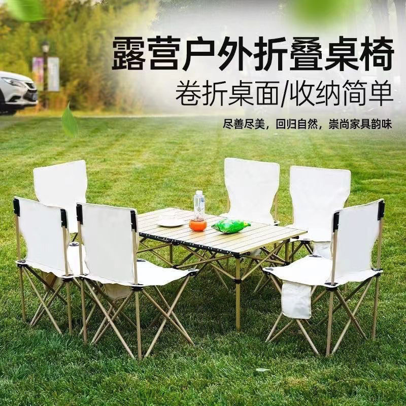 Meja dan Kursi Berkemah Meja Lipat Luar Ruangan Meja Gulungan Telur Berkemah Liar Meja Piknik Portabel Peralatan Kursi Set Lengkap