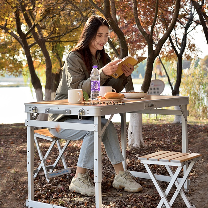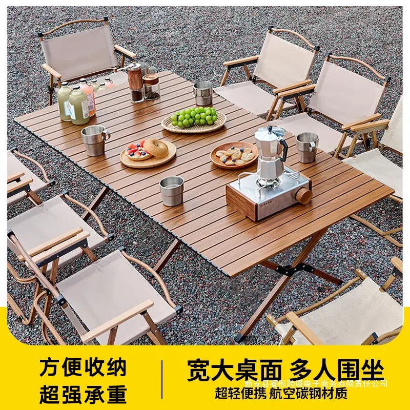 Meja Lipat Luar Ruangan Meja Telur Meja Portabel Meja Berkemah Super Ringan Meja Berkemah Kursi Meja Makan Liar Pola Kayu piknik Ringan