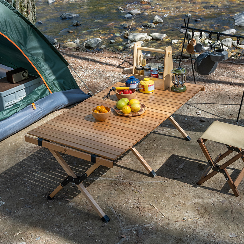 Meja barbeku portabel luar ruangan, meja piknik dan kursi perjalanan Beech dan kursi kecil lipat meja dan kursi berkemah, Meja gulung telur