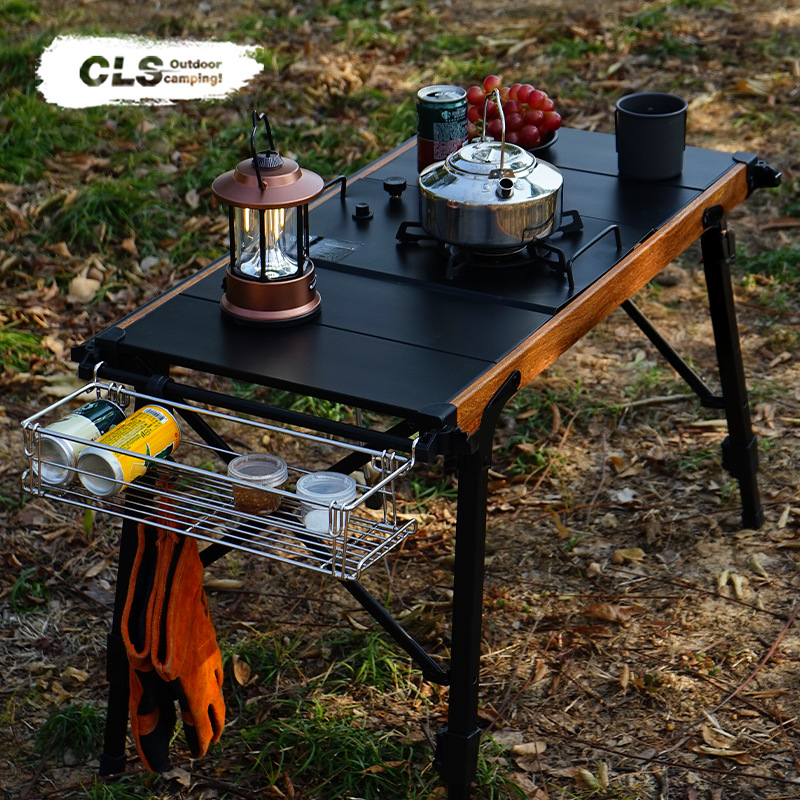 Meja lipat portabel bahan Aloi kayu, Meja lipat luar ruangan, panggangan piknik barbekyu, Meja gulung telur, tempat Kemah portabel