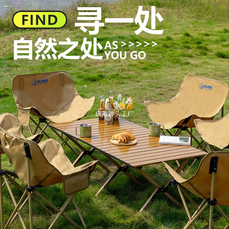 Meja dan Kursi Lipat Luar Ruangan Set Kursi Bulan Super Ringan Berkemah Piknik Satu Set Peralatan Rumah Tangga Kursi Outdoor