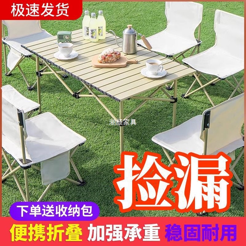 Set Meja Lipat dan Kursi Berkemah Piknik Set Lengkap Peralatan Kursi Bulan Bisa Dilipat Meja Telur Roll Portabel