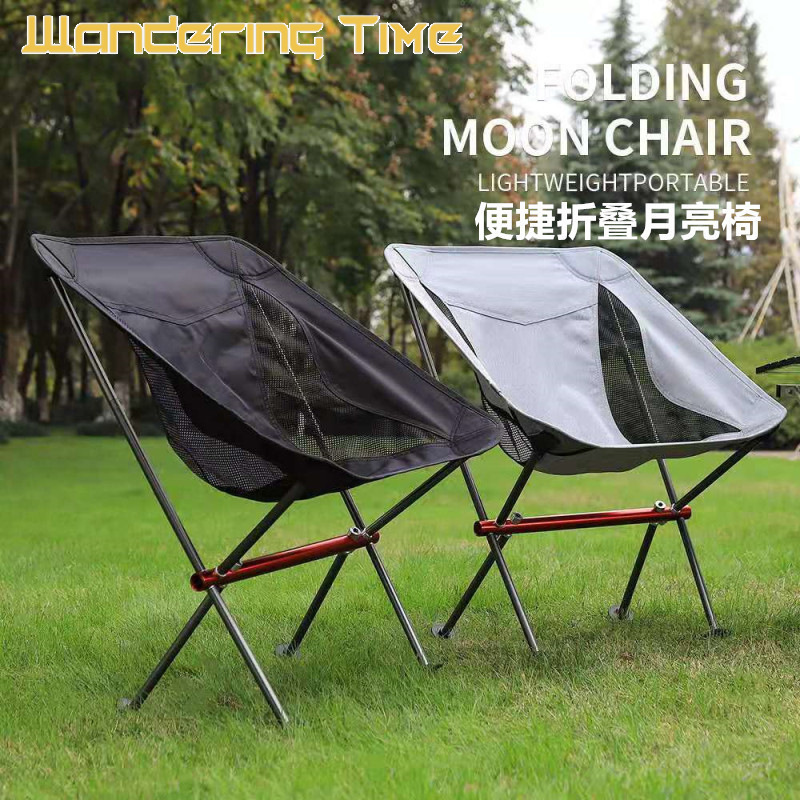 Panduan Berkemah Luar Ruangan Barbekyu Pantai Santai Memancing Kursi Bulan Portabel Kursi Lipat Paduan Aluminium Super Ringan