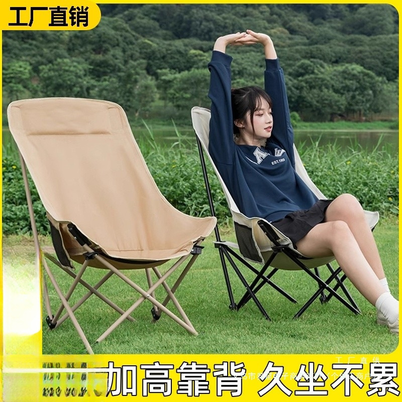 Kursi Lipat Luar Ruangan Kursi Bulan Bisa Dilipat Punggung Tinggi Kursi Santai Tempat Duduk Berkemah Kantor Portable