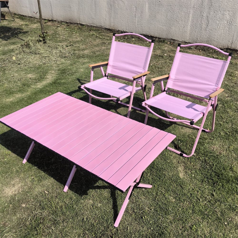 Set Meja dan Kursi Warna Merah Muda Lipat Luar Ruangan Meja Baja Karbon Portabel Teh Susu Meja Kopi Kombinasi Kursi Berkemah