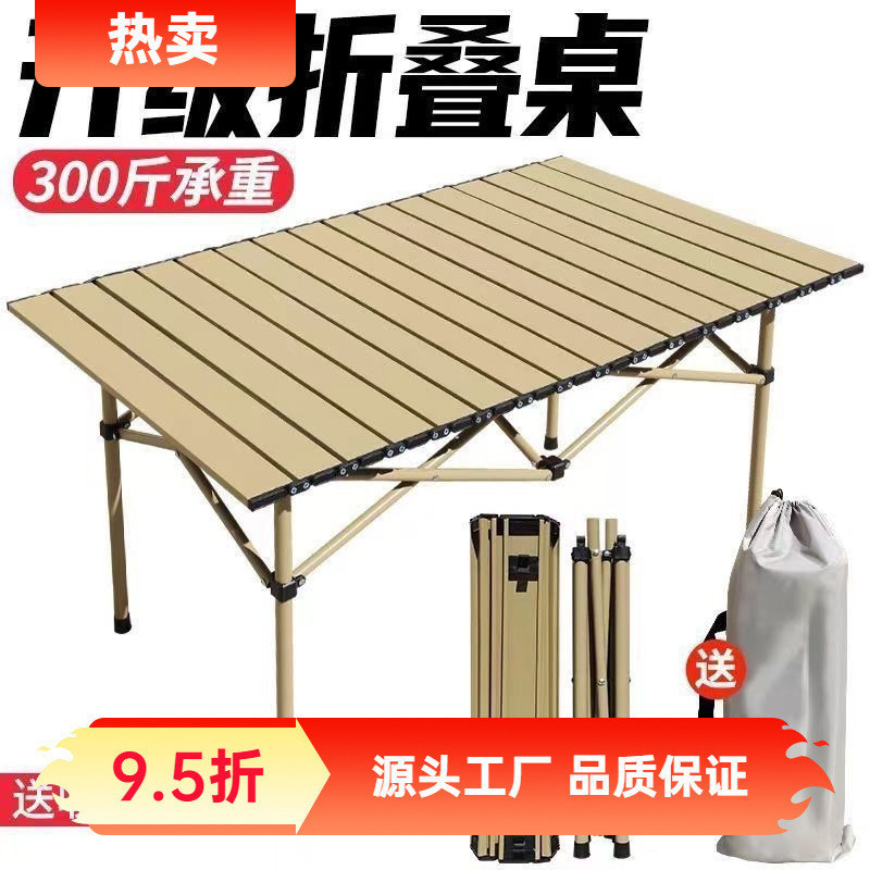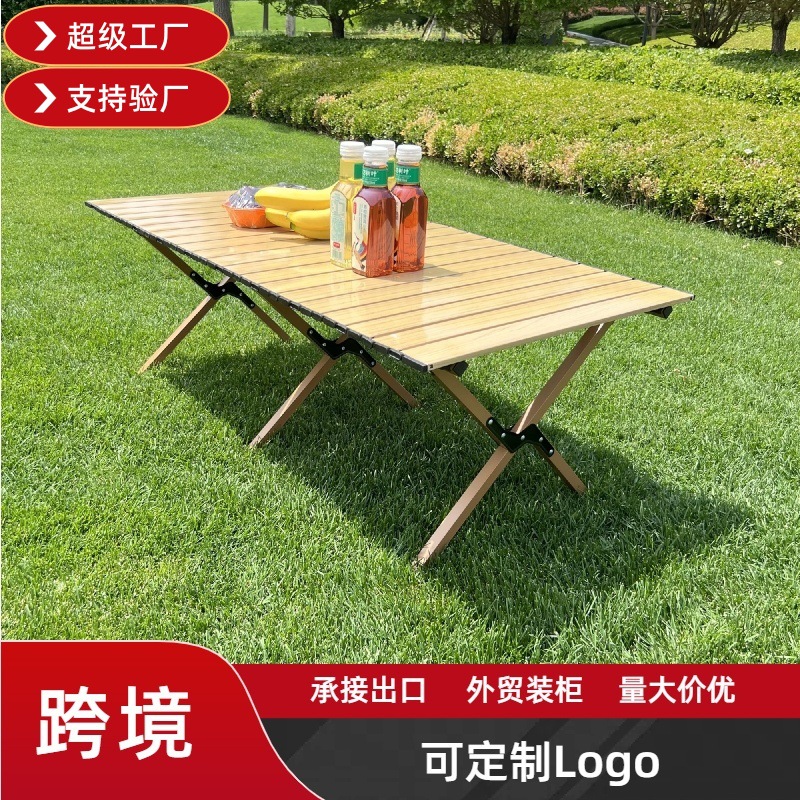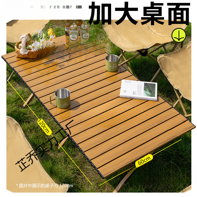 Meja lipat piknik untuk berkemah, Meja gulung telur bahan Aloi aluminium, Meja Kemah lipat piknik cepat portabel, Meja papan bambu gaya sama untuk berkemah di luar ruangan