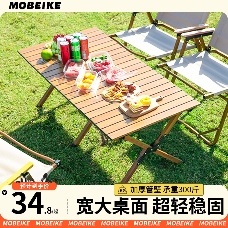 Meja lipat Outdoor alumunium alloy kursi Kermit portabel, bangku piknik berkemah, Meja gulung telur set lengkap peralatan