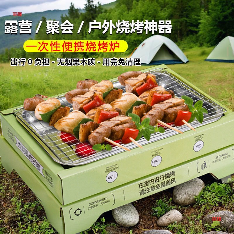 Panggangan sekali pakai panggangan panggangan piknik peralatan luar ruangan portabel rumah tangga kecil arang buah set panggangan tanpa asap