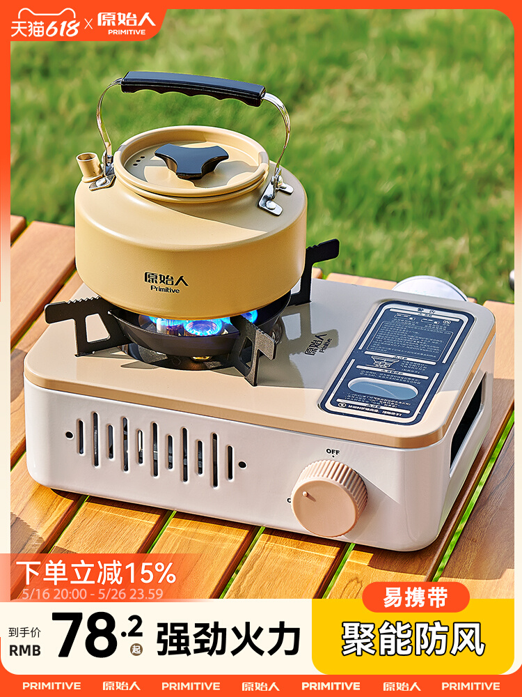 Huofeng Qingfeng Tungku Luar Ruangan Satu Tubuh Tungku Peralatan Darurat Berkemah Portabel Tungku Gas Ransel Piknik Berjalan Kaki