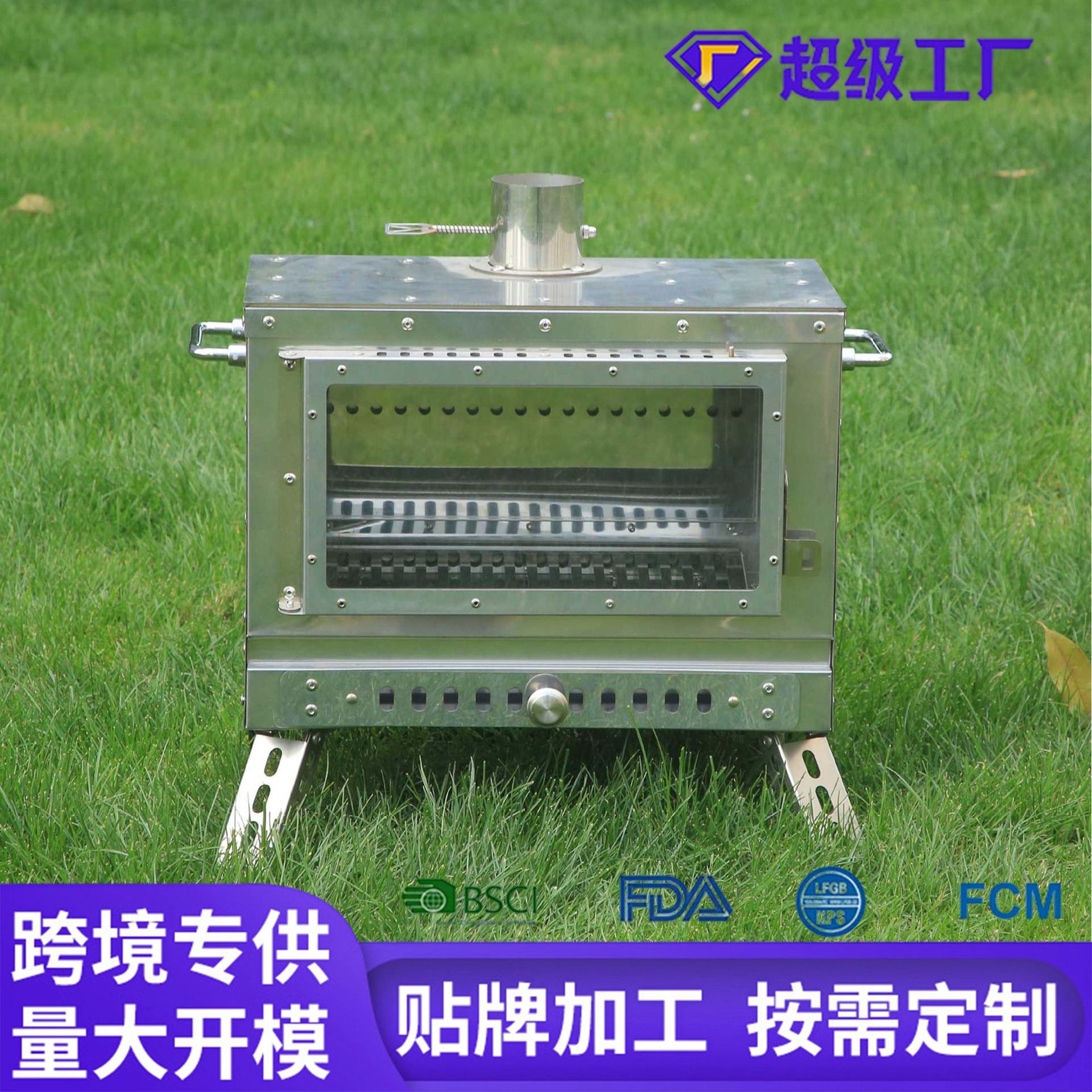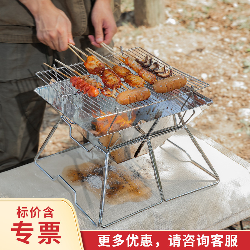 Pemanggang barbekyu, bahan stainless steel lipat luar ruangan, panggangan arang yang dapat dilepas, alat piknik barbekyu, oven luar ruangan