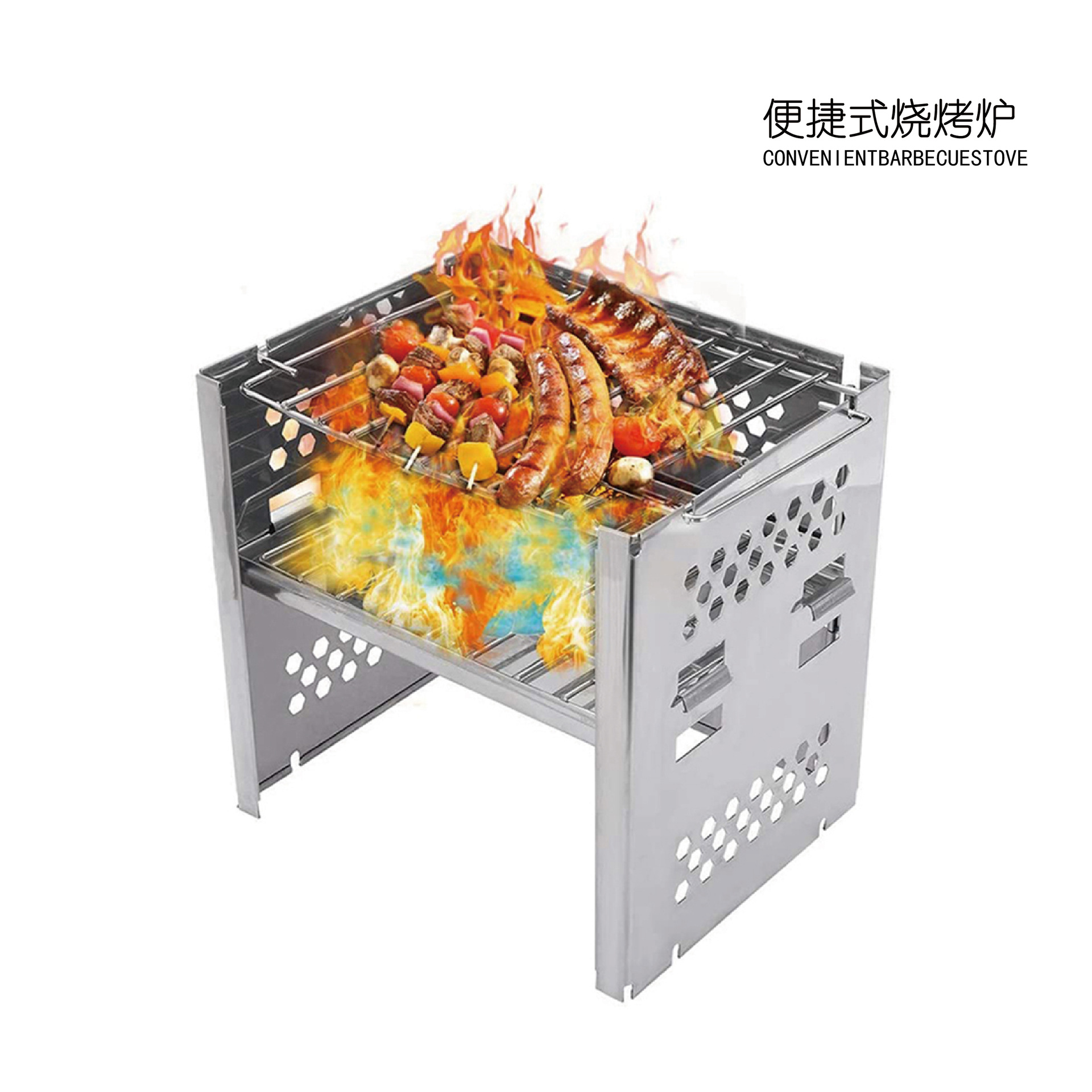 Stainless Steel Lipat Barbekyu Tungku Barbekyu Kayu Tetap Portabel Persegi