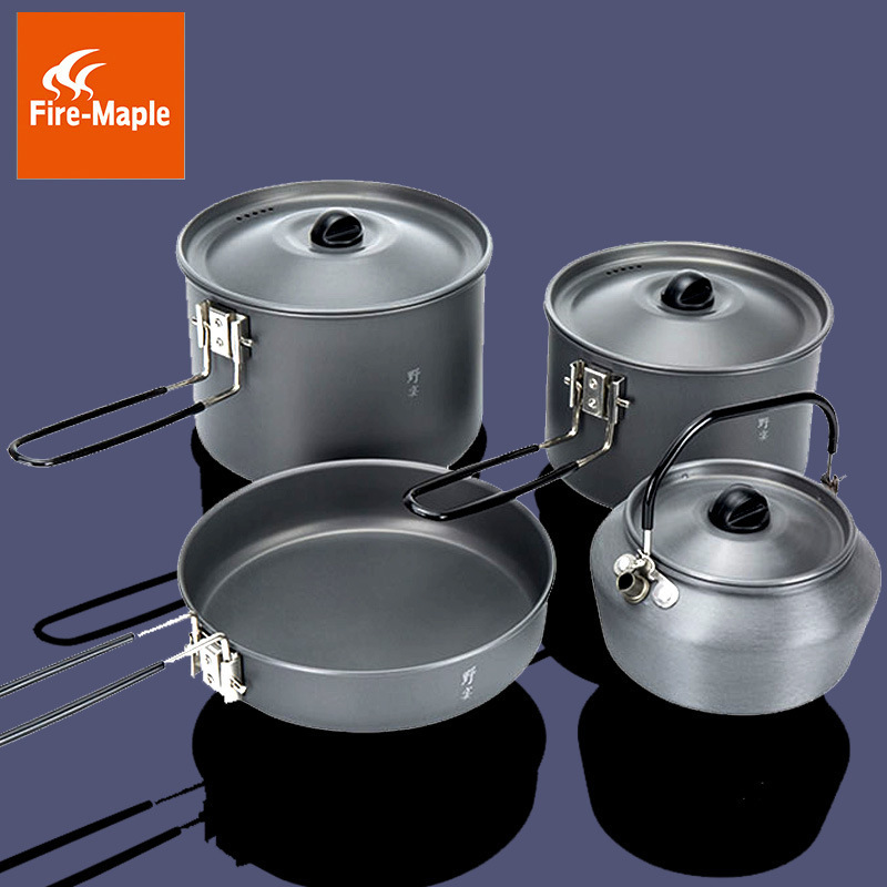 Fire Fengye jamuan 4 set pot 3-4 orang, peralatan masak luar ruangan ketel portabel setelan luar ruangan perlengkapan piknik dapur seluler
