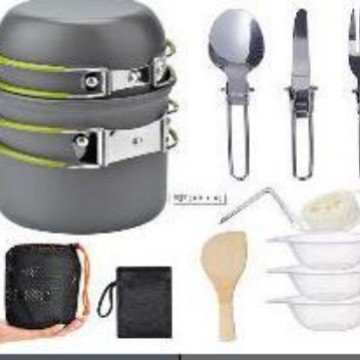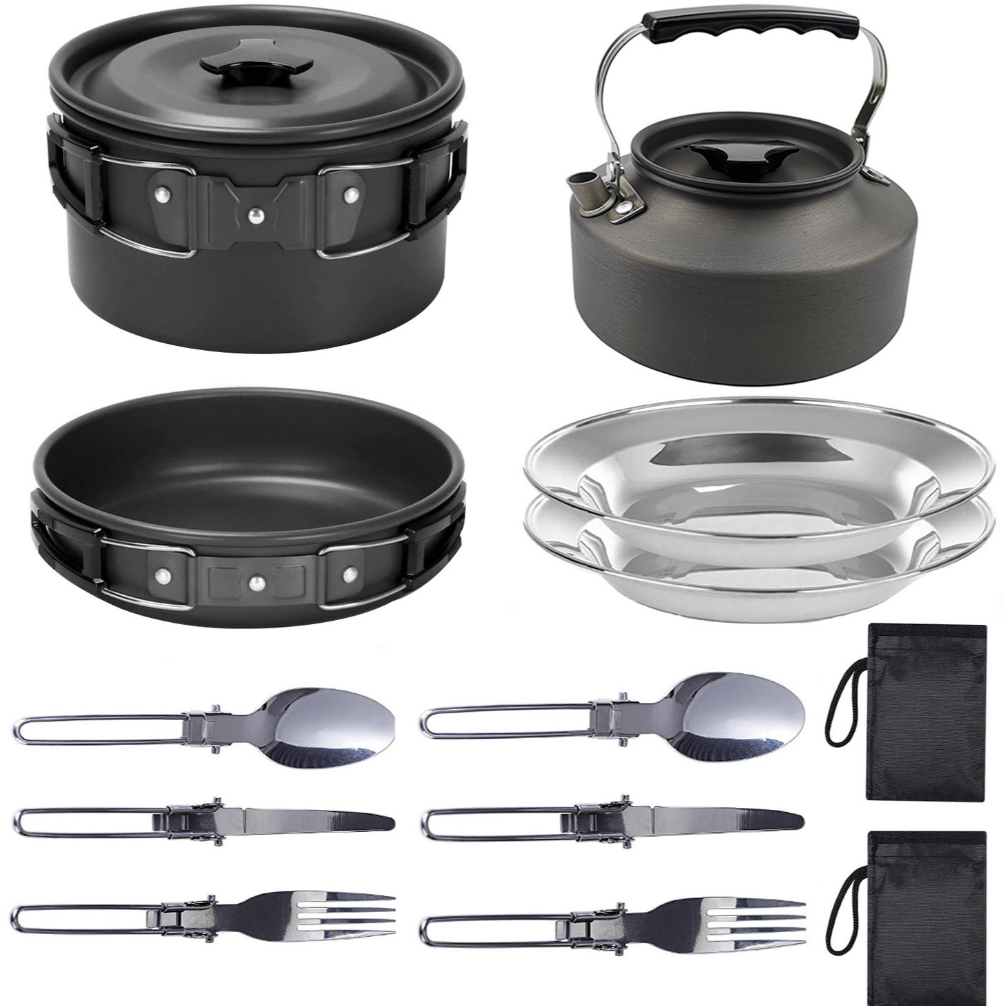 Perlengkapan luar ruangan Amazon pot berkemah set kombinasi portabel 1-2 orang kompor piknik peralatan masak setelan AT101-3