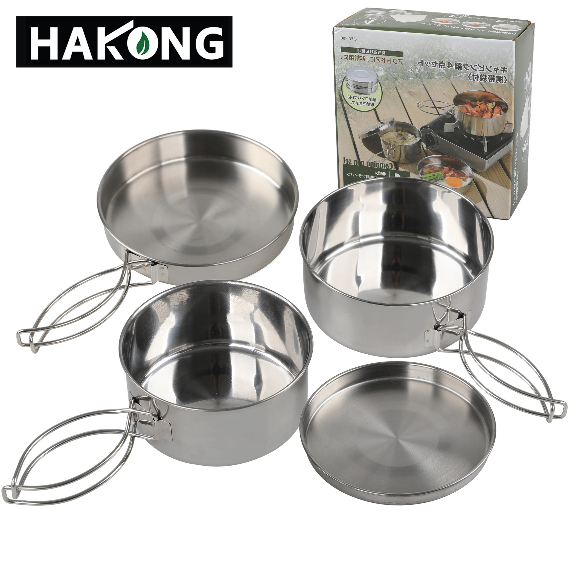 Mangkuk lipat baja tahan karat 304 Kemah luar ruangan pot portabel set peralatan makan piknik set kombinasi peralatan masak mangkuk