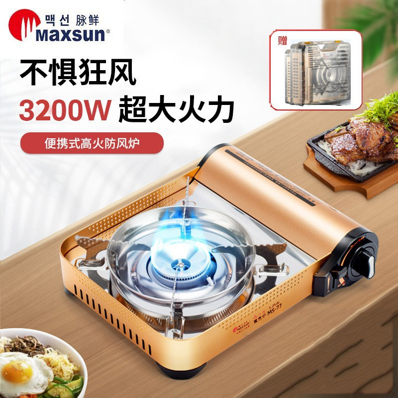 Maoxiang MS77 kompor kaset, dengan cincin tahan angin luar ruangan api tinggi kompor magnetik pot panas berkemah kompor gas portabel
