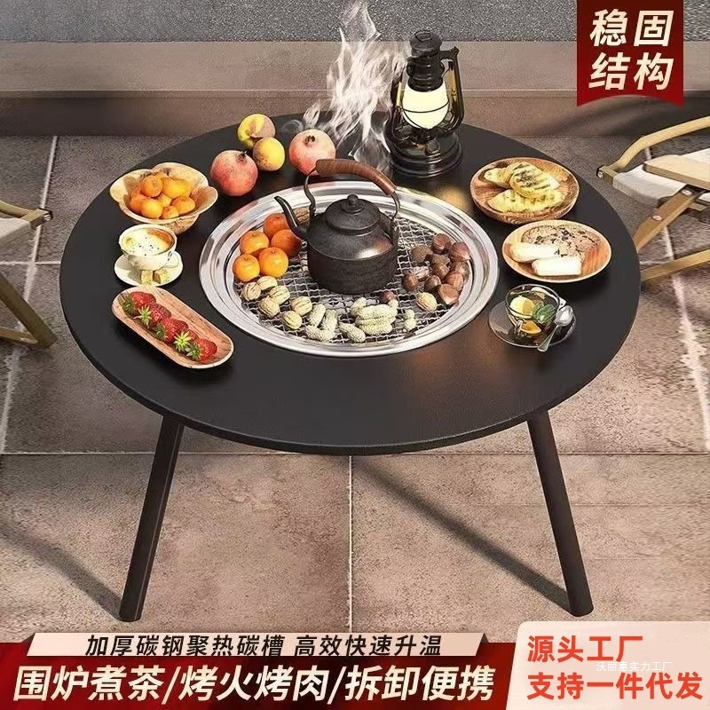 Oven Barbekyu Luar Ruangan Kompor Lipat Portabel untuk Membuat Teh Meja Multifungsi Rumah Tangga Halaman Rumah Set Lengkap Api Arang