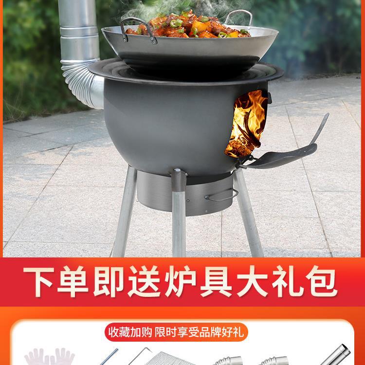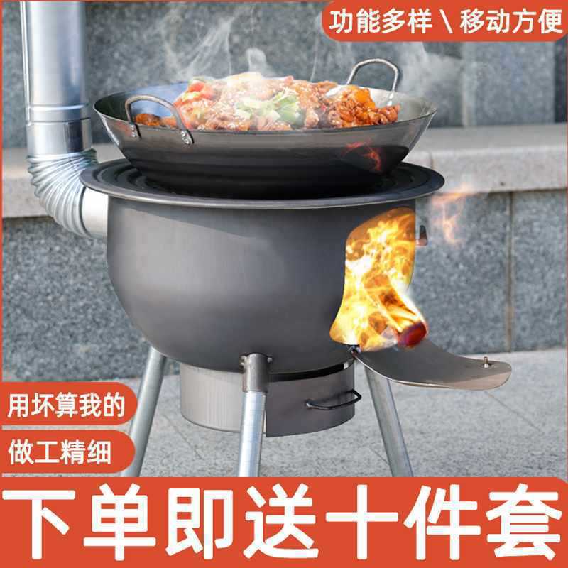 Kompor kayu stainless steel hemat energi terintegrasi untuk rumah tangga pedesaan, kompor tanah besi besar portabel untuk luar ruangan.