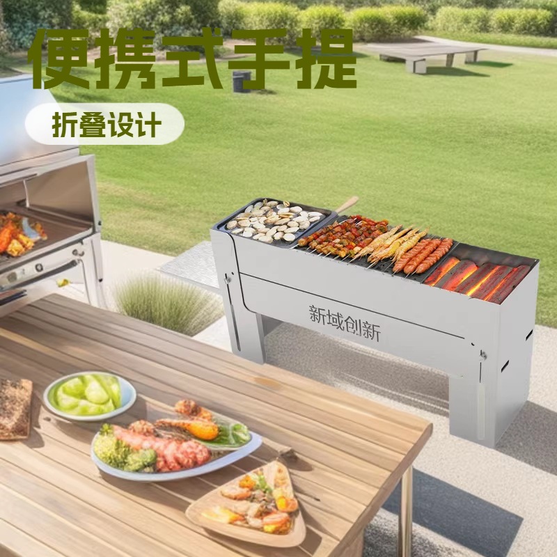 Kompor barbekyu lipat portabel, pemanggang barbekyu luar ruangan bebas asap karbon lipat tahan angin anti karat
