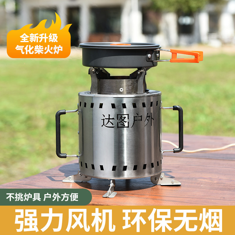 Kompor kayu bakar gasifikasi baja tahan karat baru luar ruangan pabrik perlindungan lingkungan bebas asap kompor berkemah pembakaran kayu portabel grosir