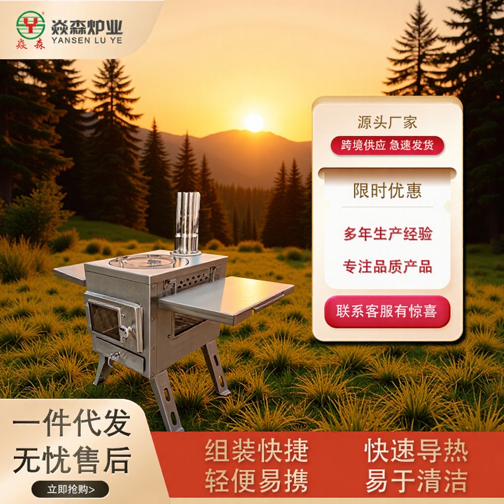 Portabel Tebal Stainless Steel Kompor Kayu Bakar Kompor Lapangan Camping Luar Ruangan Kompor Kayu Bakar Beras Pabrik Lintas Batas Grosir