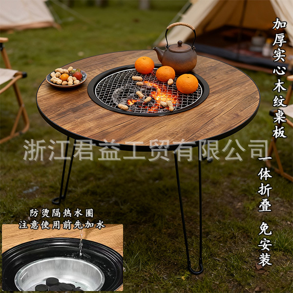 Kompor meja barbekyu lipat, kompor berkemah luar ruangan bebas asap memasak teh meja api multifungsi rumah tangga arang barbekyu kompor grosir