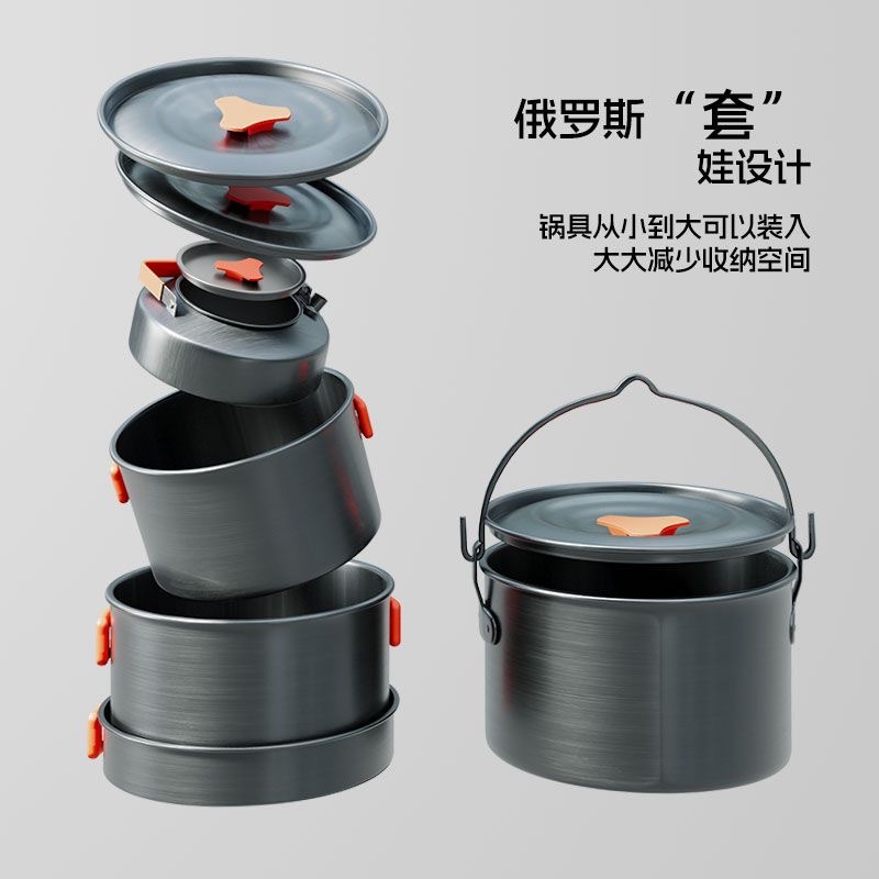 Set 6 Set Panci Berkemah Luar Ruangan Aluminium Alloy Set Panci Panci Berkemah Ringan Portabel