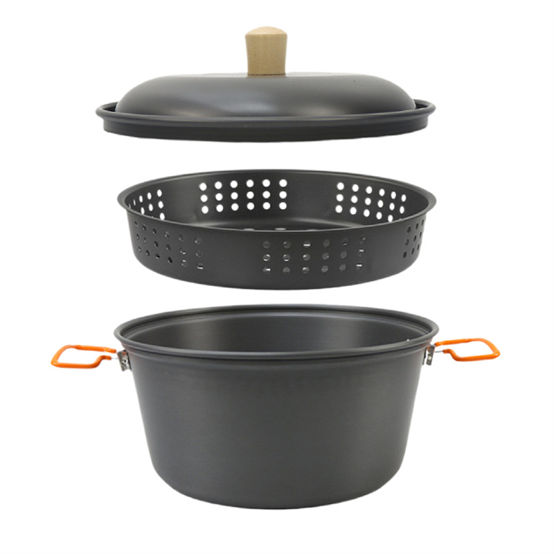 7500ML Kapasitas Besar Steamer Outdoor Portable Pot Piknik Berkemah Gaya Peralatan Masak Set Pot Piknik Pot Double-Ear Lipat Pot