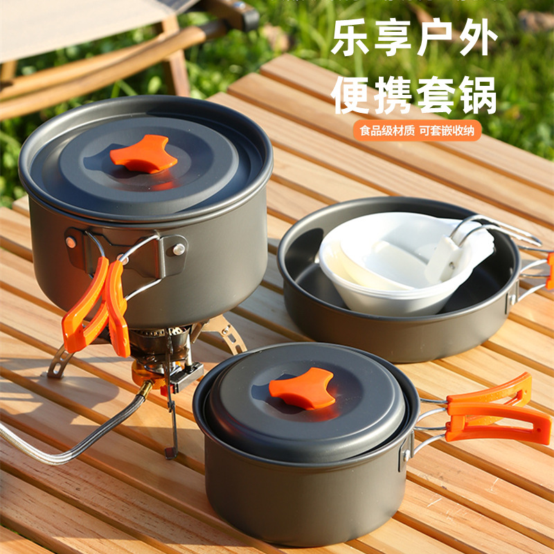 Ketel kemah luar ruangan, perlengkapan berkemah lintas batas, set panci set, perlengkapan DS-308, pot kemah portabel bahan aluminium