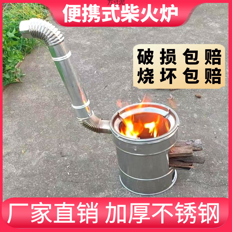 Wanjia Merek Portabel Ekstra Tebal Stainless Steel Kompor Kayu Bakar