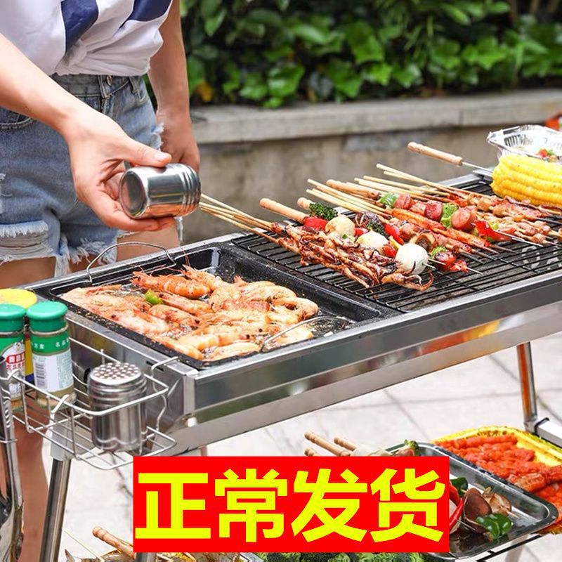 Barbekyu Stainless Steel Besar Rak Arang Oven Barbekyu Luar Ruangan Alat Lengkap Barbekyu Rumah Tangga 5 Orang Cincin Ambi Portabel