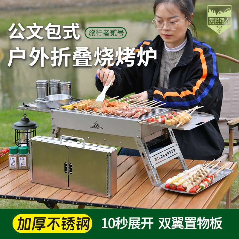 Panggangan barbeku luar ruangan baja tahan karat pemanggang barbeque rumah tangga pemanggang barbeque piknik karbon panggangan rak dalam stok grosir