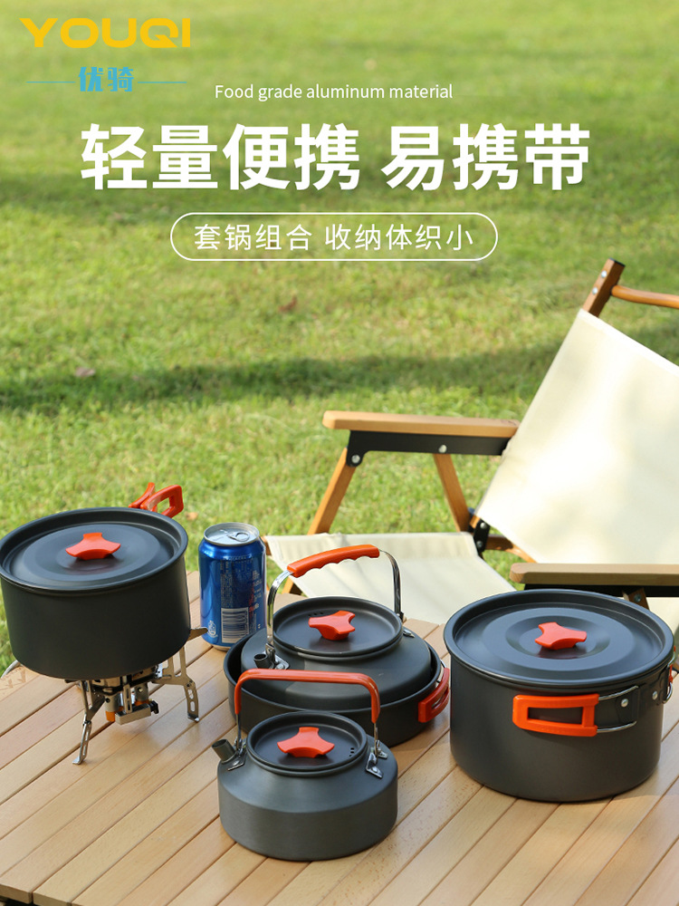Set panci luar ruangan, Ketel, peralatan piknik, peralatan masak luar ruangan, piknik, berkemah, kartu portabel, kompor, setelan