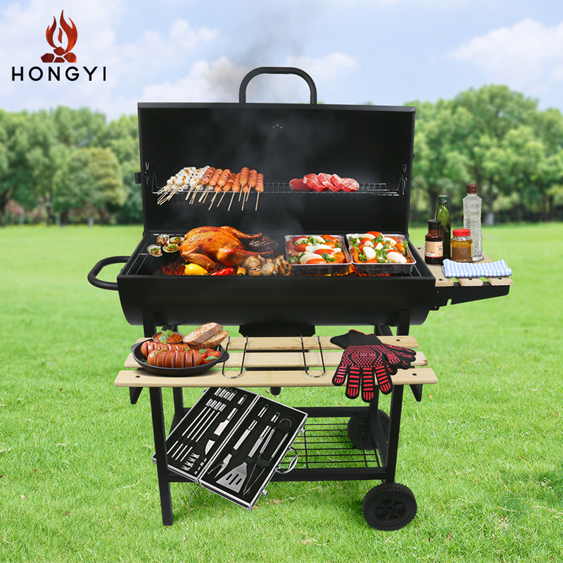Pemanggang barbekyu, kompor halaman komersial, panggangan karbon, panggangan barbekyu luar ruangan, tusukan piknik, pesta